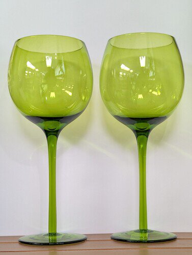 Wine Glass Set 2 Large Green Wine Goblets Balloon shaped